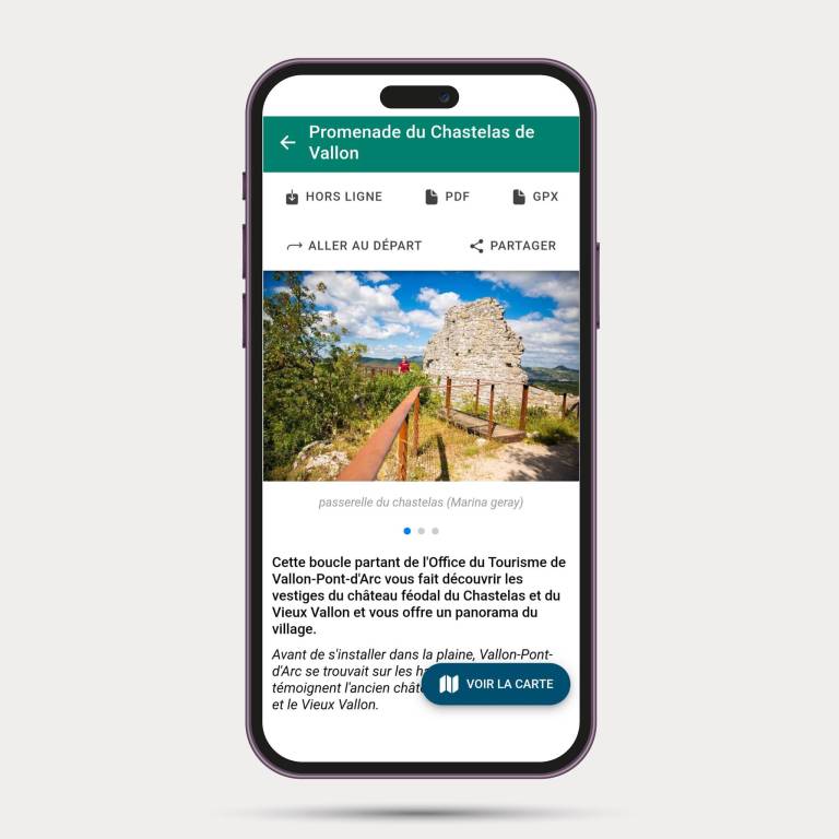 En téléchargeant l'appli dédiée Rando Monts d'Ardèche, vous accèdez à tes parcours enregistrés même hors ligne, et à ta localisation précise pour rester sur le tracéhttps://randonnee.gorges-ardeche.fr/